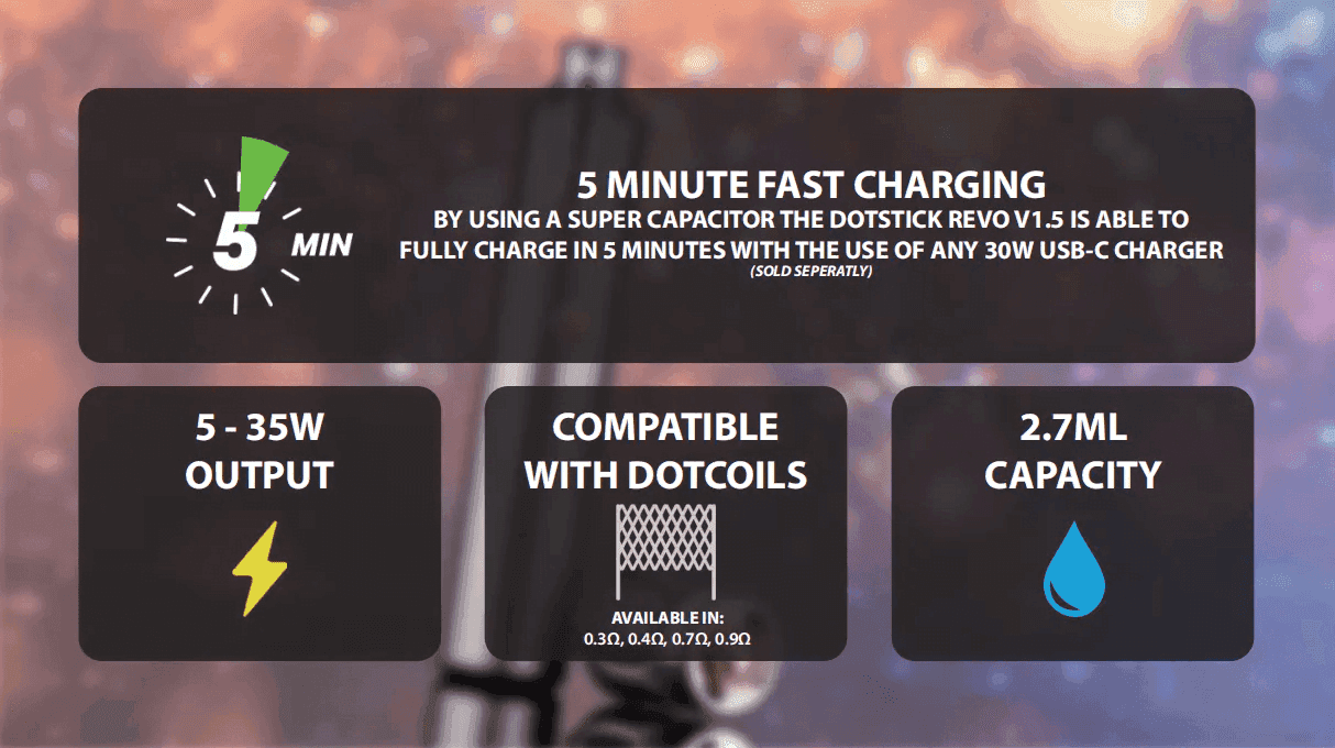 - 兼容所有0.3Ω或更高的dotCoils(dotAIO V2和dotTank 25mm)